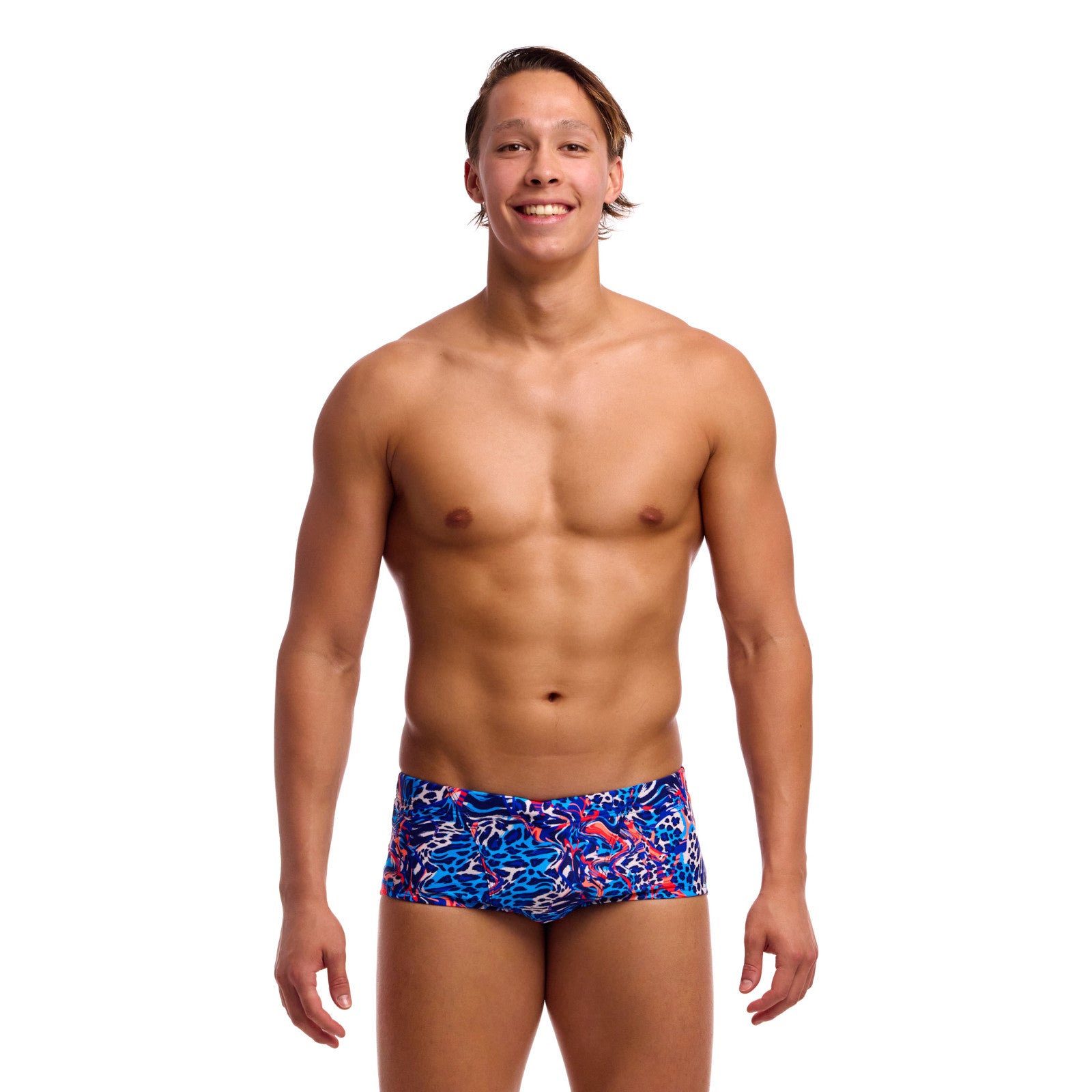 Durch das verwendete, chlorbeständige C-Infinity-Gewebe bleibt das Muster so farbecht und strahlend wie am ersten Tag. Das italienische Material wird exklusiv für Funkita und Funky Trunks verwendet, es ist besonders strapazierfähig, schnelltrocknend, elastisch, atmungsaktiv und bietet dabei eine feste Kompression. Zudem kommt noch 50+ UV Schutz dazu.